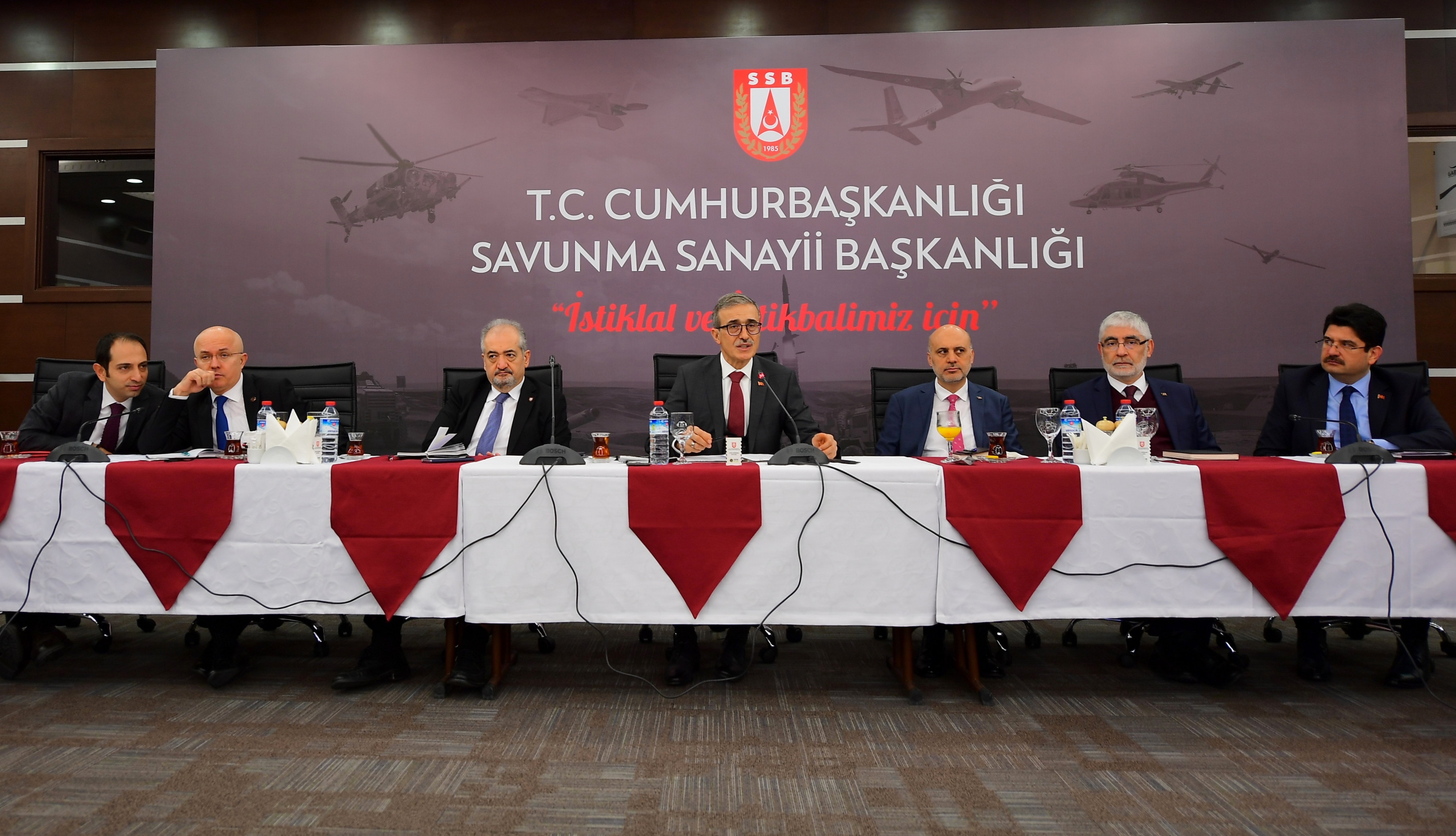 Savunma Sanayi Başkanı Prof. İsmail DEMİR ve Savunma Sanayii Başkan Yardımcıları Harun ÇELİK, Dr. Celal Sami TÜFEKÇİ Prof. Dr. Faruk YİĞİT, Mustafa Murat ŞEKER ve Serdar DEMİREL ile beraber, kurumun Ankara`daki yerleşkesinde basın mensuplarıyla, 2019 yılının genel değerlendirmesini yapmak üzere, sabah kahvaltısında bir araya geldi. SSB Başkanı Prof. DEMİR, tüm yılın genel değerlendirmesinin yapıldığı basın buluşmasında, basın mensuplarıyla ayrıca gelecek yıl planlanan çalışmalar konusunda da önemli bilgiler paylaşıldı.