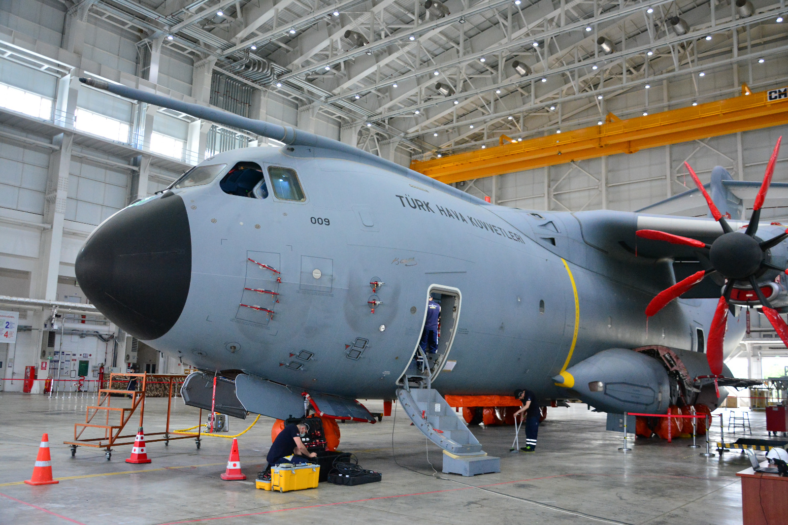 12’nci Hava Ulaştırma Ana Üs Komutanlığına ait kiralanmış tek gözlü hangarda devam eden MSN-009 üzerindeki Retrofit çalışması Airbus Destek Ekibi tarafından sıkı şekilde denetlenmekte. Ekip aynı zamanda gerektiğinde Uçak FASBAT Müdürlüğü personeline destek de olmakta. Ancak özellikle 3’üncü A400M Uçağından itibaren HvKK bu Retrofit çalışmasını tamamen kendi imkanlarıyla gerçekleştirmeyi hedefliyor. Retrofit ve Overhol/FASBAT çalışmaları A400M Uçaklarının hizmet ömrü süresince belirli periyodlarla uygulanacağından bu kabiliyetin kazanımı hem ekonomik hem de stratejik açıdan büyük önem arz ediyor.