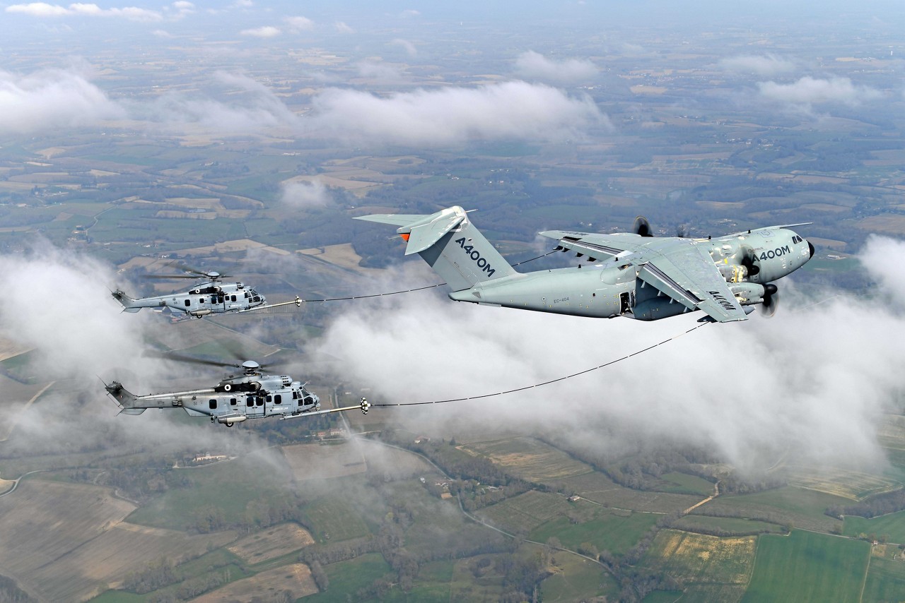 With this capability, the A400M becomes one of the few tanker aircraft in the world capable of such operations. The multi-purpose H225M is one of the few helicopters in the world capable of in-flight refueling, extending the standard 700 NM range by up to 10 hours flight time.