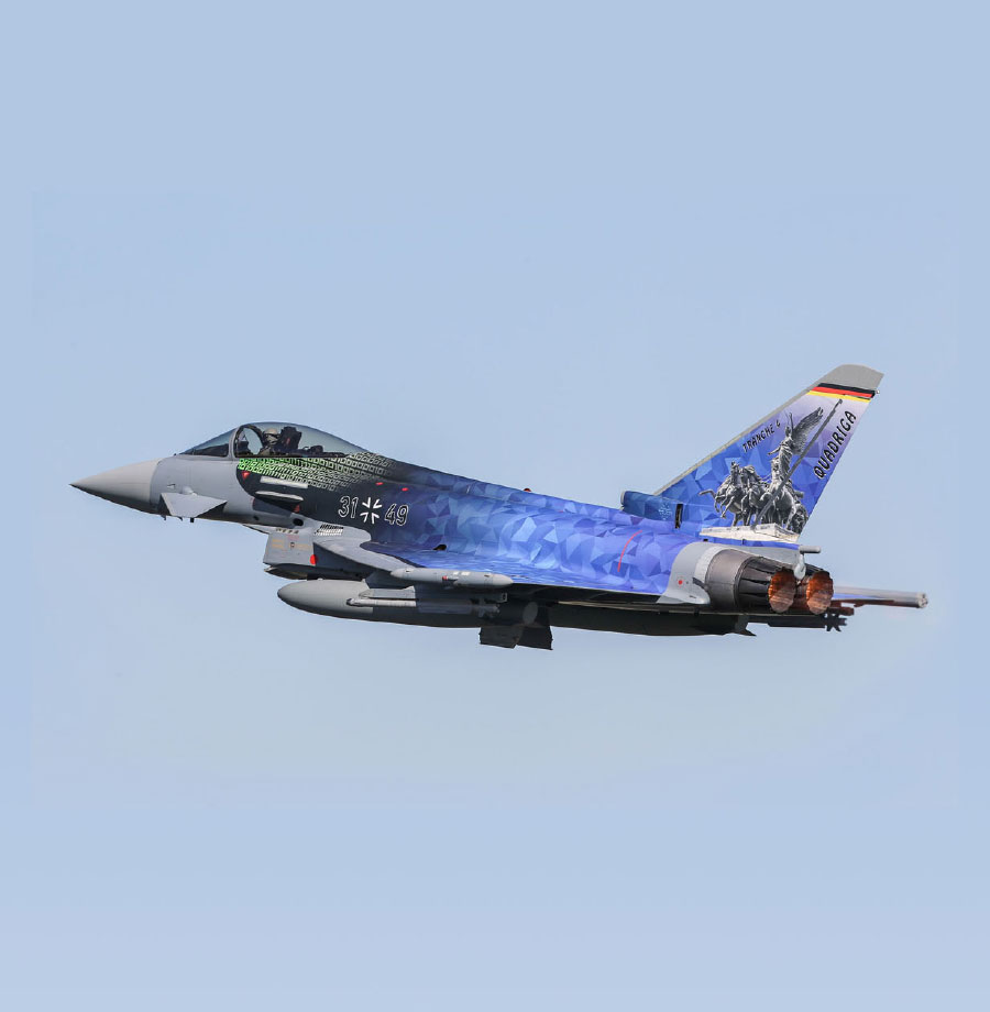 Airbus has signed a contract to deliver 38 new Eurofighter aircraft to the German Air Force. This makes Germany the largest ordering nation in Europe's biggest defense program. The order, also known by its project name Quadriga, covers the delivery of 30 single-seater and 8 twin-seater Eurofighters. Three of the aircraft will be equipped with additional test installations as Instrumented Test Aircraft for the further development of the Eurofighter program.