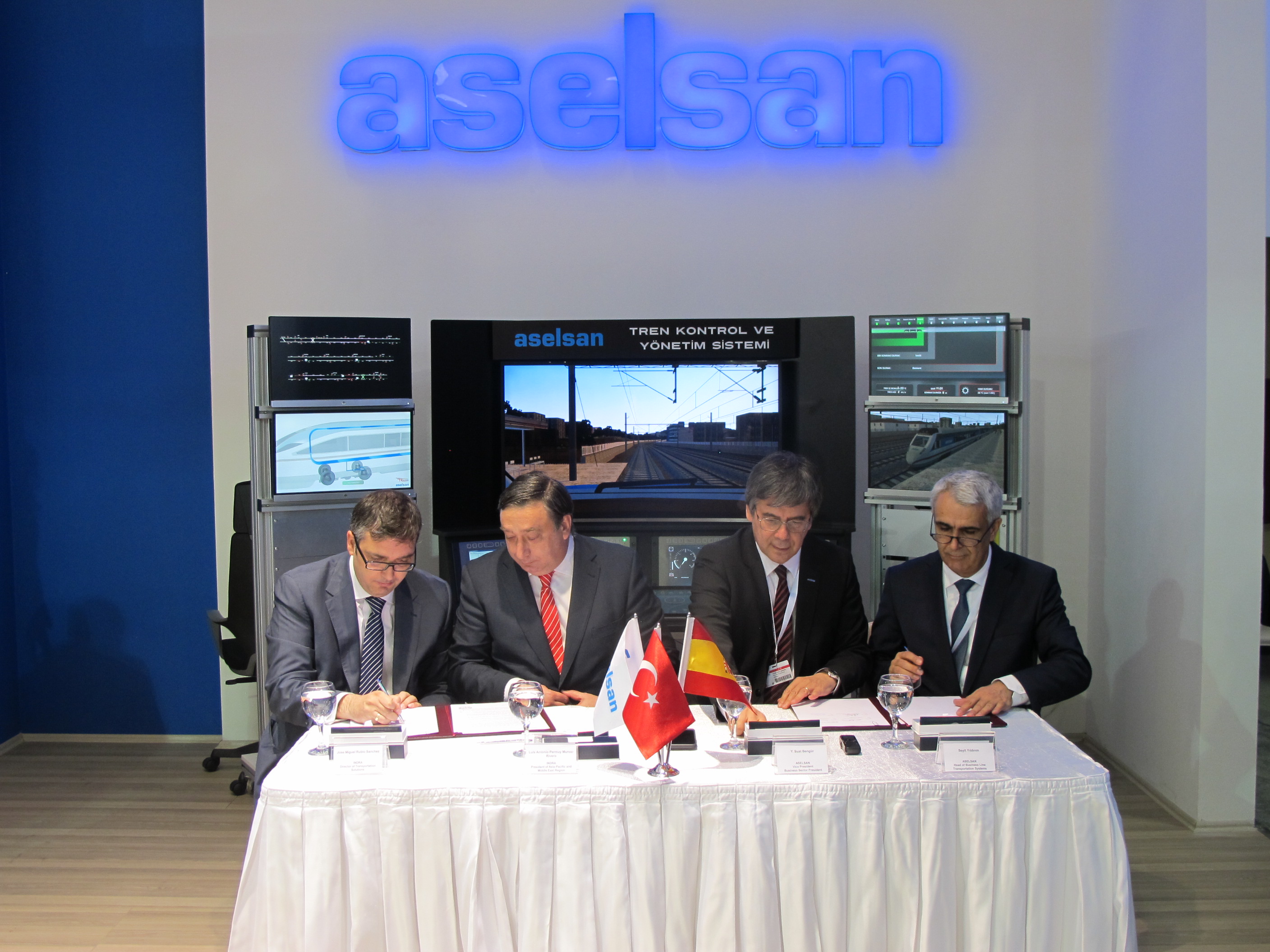Parties realised a signing ceremony of their memorandum of understanding at the EURASIA RAIL 2016 event which was held on 4th of March 2016 in İstanbul. On one side, Aselsan was represented by Mr. Y. Suat Bengür / Vice President and Transportation, Security, Energy & Automation Systems (UGES) Business Sector President and Mr. Seyit Yıldırım / Head of Transportation Business Line. On the other side, INDRA was represented by Mr. Luis Antonio Permuy Munoz-Rivero / President of Turkey, Central Asia and Asia-Pacific and Mr. Jose Miguel Rubio Sanchez / Director of Transportation Solutions.