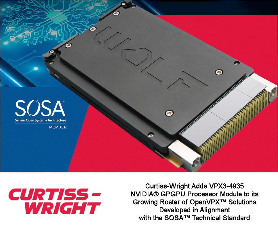 On April 29, 2021, Curtiss-Wright’s Defense Solutions division introduced its first 3U OpenVPX GPGPU processor module designed in compliance with the U.S. Army CCDC C5ISR Center’s C4ISR/EW Modular Open Suite of Standards (CMOSS) and aligned with standards currently being defined by The Open Group - Sensor Open Systems Architecture (SOSA) Consortium.