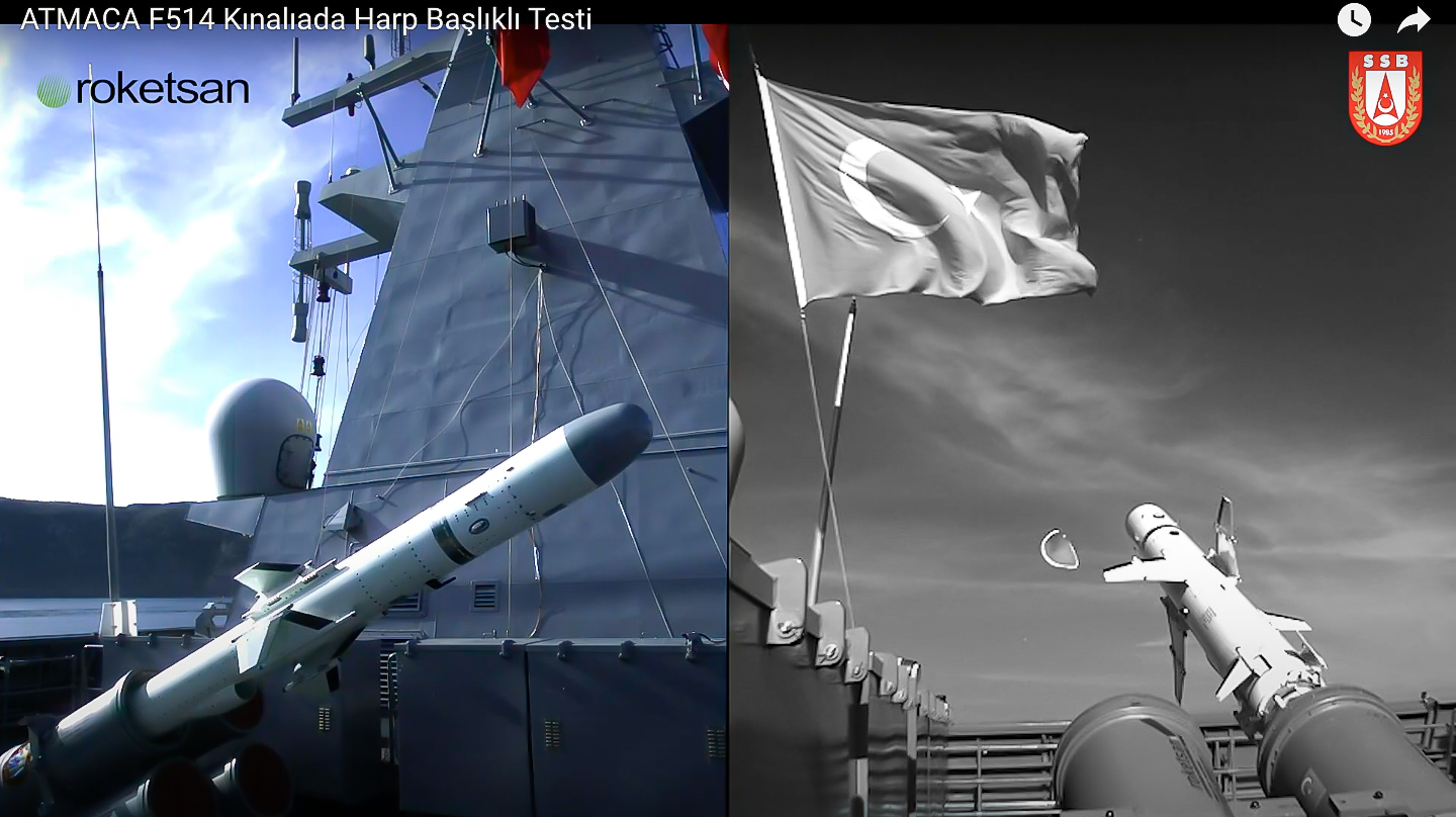 During the telemetry test performed on February 3 in the Black Sea, northeast of Sinop, the ATMACA Anti-ship missile was fired from a 4-cell launcher (similar to Mk-141) placed on the port side of the TCG Kınalıada Corvette and successfully scored a hit on the Roketsan made platform, which imitates a surface target. On February 4, 2021, the second launch test was carried out against a similar Roketsan made platform target with the ATMACA Anti-ship missile using a live warhead, and this time, the target was also destroyed successfully. With the last live firing test, the effectiveness of the ATMACA missile's warhead was also tested for the first time. Both launches from the TCG Kınalıada Corvette were monitored live by the test measurement equipment at the Sinop Missile Test Range (such as radar systems and high-speed cameras that can measure the missile's trajectory and speed) and from the air by a UAV (Call Sign: Cenah 2) using the Star Safire 380 HLD FLIR. President of Defence Industries İsmail Demir announced the tests on his official social media account and congratulated everyone involved for the successful test. "Our first indigenous anti-ship missile ATMACA successfully destroyed the target after fired from our national ship TCG Kınalıada. I congratulate everyone who contributed. Godspeed to our Heroic Navy!" President DEMİR also shared a short video of the test-fires performed on February 3 and February 4 between 14:00 and 14:30. In the video recorded by the UAV flying at an altitude of 18,129ft, the passive ranging maneuver performed by the ATMACA missile at the terminal stage before hitting the platform type target can be clearly seen (during the firing test conducted on February 4).