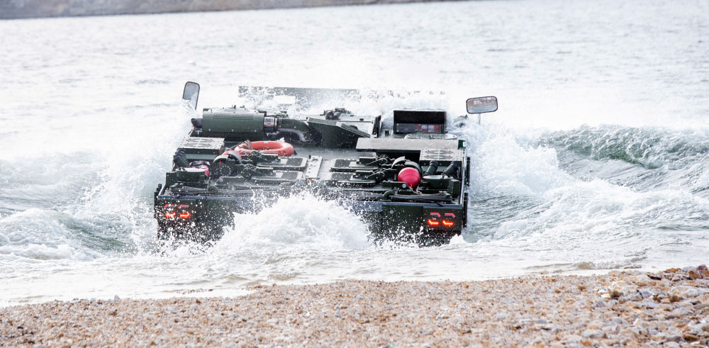 The Marine Assault Vehicle (MAV) is the latest technology amphibious vehicle designed by FNSS to meet amphibious operational requirements. During the beach landing phase of an amphibious operation, these vehicles are launched from landing helicopter docks (LHD) and are able to rapidly cover the distance between the vessel and the shore, allowing marine units to land under armor protection. The MAV fire power is provided by the purposely designed CAKA dual remote-controlled turret that can be armed with a 12.7 mm MG and a 40 mm AGL.
