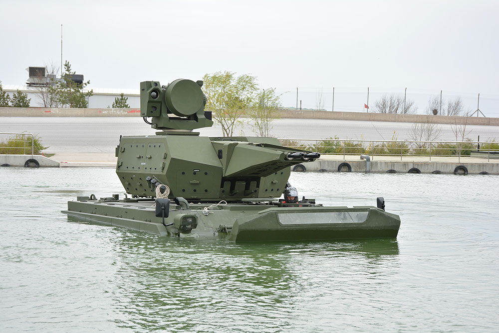 Both the Weapon System Vehicles and the Command and Control Vehicles were built on the ACV-30 chassis, the tracked carrying platform specially developed by FNSS to carry the command and control, large scale mobile radar, gunfire support, self-propelled artillery and missile systems. The ACV-30 is also used in the Low Altitude Air Defense Missile System (HİSAR-A) project. The most remarkable feature of the ACV-30 is its amphibious capability while maintaining high payload capacity, superior mobility performance and a large internal volume. This amphibious feature distinguishes “Korkut” from all other existing medium caliber self-propelled air defense systems in the market today. The “Korkut” system is able to carry out missions with heavy armored platforms such as the main battle tank and armored combat vehicles, including the ability to fire on the move, and maneuver natural obstacles such as river crossings, offering a significant tactical advantage.