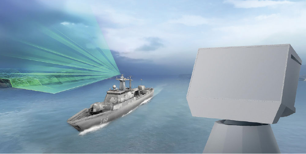 The TRS-4D has been designed to be used for anti-aircraft and anti-surface operations. Its rotating antenna combines mechanical and electronic azimuth scanning, which allows targets to be detected and tracked very quickly. Thanks to the increased sensitivity of the radar system’s AESA technology it is possible to detect small and manoeuvring targets more precisely and to confirm the targets more quickly, which means that the ship crew has more time to respond to threats. As the system’s characteristics can be defined via its software, the radar can be specifically programmed and its parameters set according to the customer’s requirements and can also be adapted to any new or modified threats that may arise over the useful life of the ship.