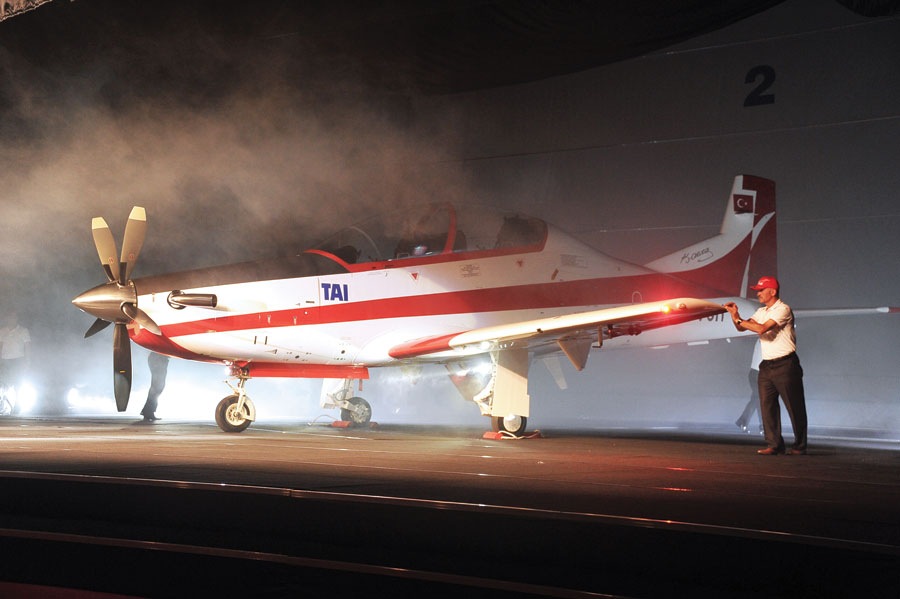 Following the completion of manufacturing and assembly studies of the Primary and Basic Trainer Aircraft "Hürkuş", which was designed by TAI engineers and manufactured also by several local subcontractors for meeting the trainer aircraft needs of the Turkish Air Force, was rolled out at the ceremony held at TAI’s Kazan premises.