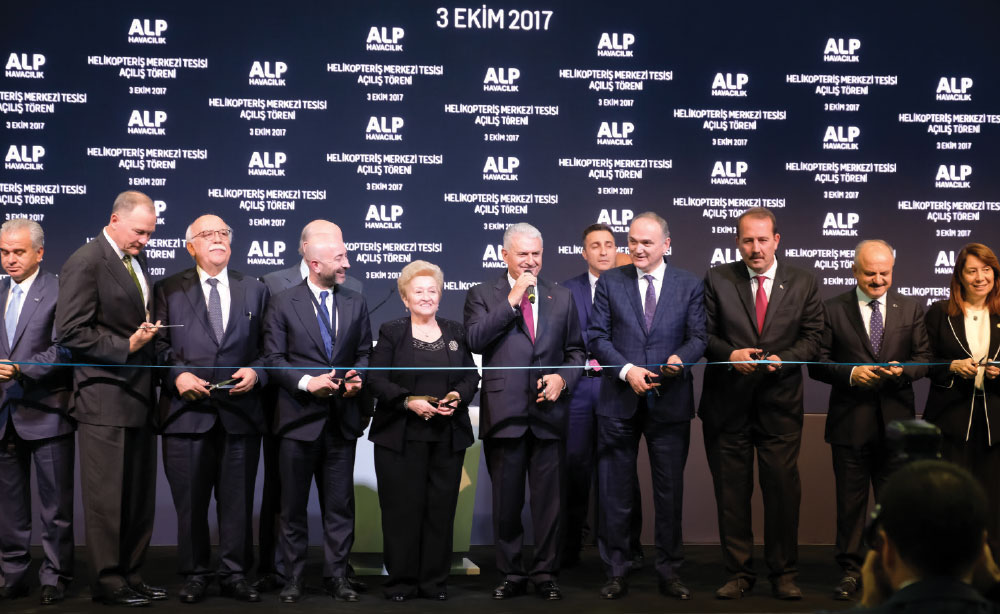 Prime Minister Mr. Binali Yıldırım, Minister of Science, Industry and Technology Dr. Faruk Özlü, Undersecretary for Defense Industries Prof. İsmail Demir, Mayor of Eskişehir Mr. Özdemir Çakacak, Alp Aviation Chairman of the Board Mr. Tuncer Alpata, officials from the Undersecretariat for Defense Industries, executives and representatives of Defense Industry companies and many invitees attended the opening ceremony of Alp Aviation Helicopter Business Center Facilities.