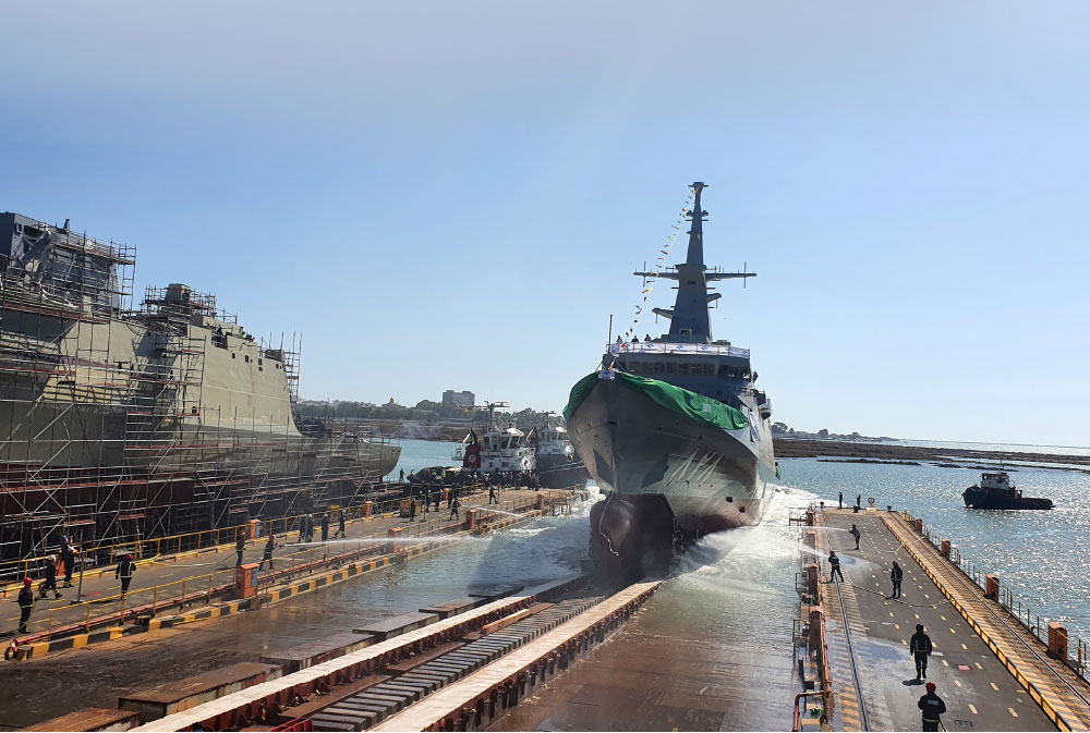 22 July 2020, Navantia successfully carried out the launching of AL-JUBAIL, the first of five corvettes built for the Royal Saudi Naval Forces (RSNF). The ceremony was held in slipway number 2 at the San Fernando shipyard, and was chaired by the Commander of RSNF, H. E. Vice Admiral Fahad Bin Abdullah AL-GHOFAILY; by the Chairwoman of Navantia, Susana de SARRIÁ; by the Acting CEO of SAMI, Eng. Walid ABUKHALED; and by the Admiral of Logistics Support Bay of Cadiz of Spanish Navy, Vice Admiral Ricardo A. Hernández LÓPEZ (Alardiz).