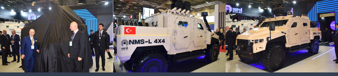 During IDEF '23 Fair, Nurol Makina showcased its latest NMS-L 4×4 Light Armored Vehicle. During the launch ceremony, Nurol Makina Deputy General Manager Anıl KAREL, and Nurol Holding Chairman Mehmet Oğuz ÇARMIKLI unveiled the vehicle to the press.