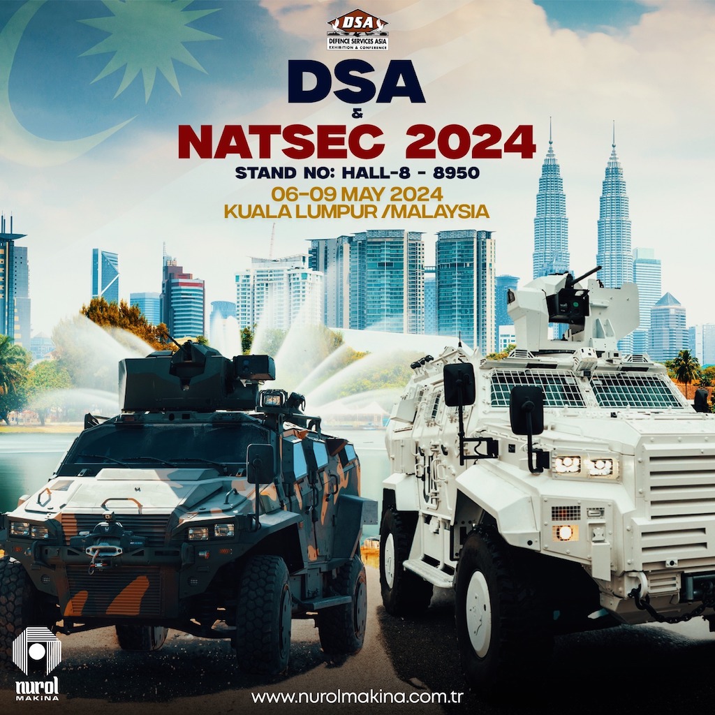 Nurol Makina will participate in DSA & NATSEC 2024, which will be held in Kuala Lumpur, the capital of Malaysia, from May 6th to 9th, 2024. Located at booth number H8-8950 of the exhibition, Nurol Makina will collaborate with the NADICORP company to showcase the latest defense vehicles and solutions to Malaysian officials, defense industry representatives, and potential customers.