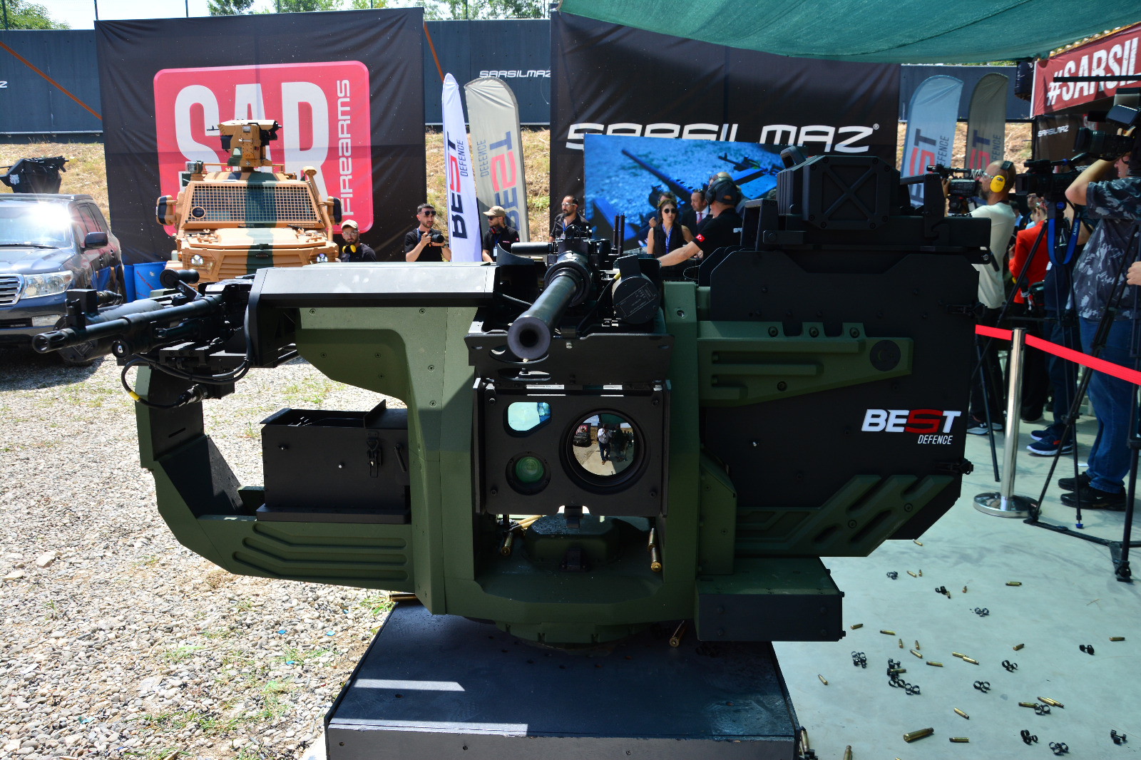 SARSILMAZ, yeni nesil, akıllı Silah Kuleleri üretimi için kuruluşuna imza attığı BEST DEFENCE firmasını ve 5.56 mm’den 30 mm’ye kadar silah sistemleri ile donatılabilen KORALP Uzaktan Kumandalı Silah Kulesi Ailesini tanıtmak üzere 4 Temmuz 2024 tarihinde Düzce’deki üretim tesislerinde bir basın toplantısı düzenledi. İstanbul ve Ankara’dan yaklaşık 65 basın mensubunun takip ettiği etkinlik sırasında hem SARSILMAZ ürünü silahları (SAR 127 MT, SAR 762 MT-C ve SAR 556 MT), hem BEST DEFENCE ürünü KORAL Uzaktan Kumandalı Silah Kulelerini (KORALP 7.62 UKSS, KORALP 12.7 mm Uzaktan Kumandalı Silah Kulesi, üzerinde hem SAR 127 MT, hem de SAR 762 MT-C silahları olan KORALP Uzaktan Kumandalı Dual Silah Kulesi ve üzerinde iki adet SAR 127 MT silahı yer alan Manuel Dual Silah Sistemi), hem de bu kulelerden bir bölümünün takıldığı BEST GRUP ürünü AŞKAR 1 ve AŞKAR 2 SUV 4x4 Meskun Mahal Müdahale Araçları (üzerlerinde halen 50 adedinin görevde olduğu belirtilen KORALP 7.62mm Uzaktan Kumandalı Silah Kulesi vardı), Zırhlı SUV (1.000+ araç görevde), Gizli Silahlı Zırhlı Kamyonet (50 adedi aktif görevde) ve İnsansız Operasyon Robotu’nu (üzerinde KORALP 7.62 UKSS yer alıyor) yerinde inceleme ve atış sahasında gerçekleştirdikleri canlı atışları izleme fırsatı bulduk.
