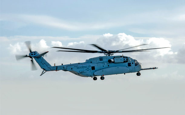 Sikorsky is now developing the CH-53K King Stallion heavy lift helicopter for the U.S. Marine Corps. The King Stallion maintains similar physical dimensions with a reduced “footprint” compared to its predecessor, the three-engine CH-53E SUPER STALLION helicopter, but will more than triple the payload to 27,000 pounds over 110 nautical miles under “high hot” ambient conditions.