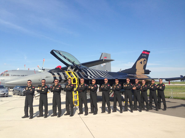 Turkish Air Force "Special Show Team" Solo Turk, F-16 block 40+ performed a show in Berlin ILA Air Show on May, 21. Solo Turk will have flying displays during the Air Show until 26 May in Berlin. On the other hand, Turkish Air Forces demostrates "Peace Eagle" AWACS Aircraft, F-4 Fighter Aircraft and C-160 transport aircraft in static display area in the Show.