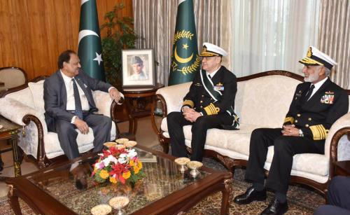 Later, Admiral Bülent Bostanoğlu called on President Mamnoon Hussain and discussed matters of mutual interest. The President congratulated Commander of the Turkish Naval Forces on being conferred with Nishan-i-Imtiaz (M) and appreciated his services in strengthening relations between the two brotherly countries.