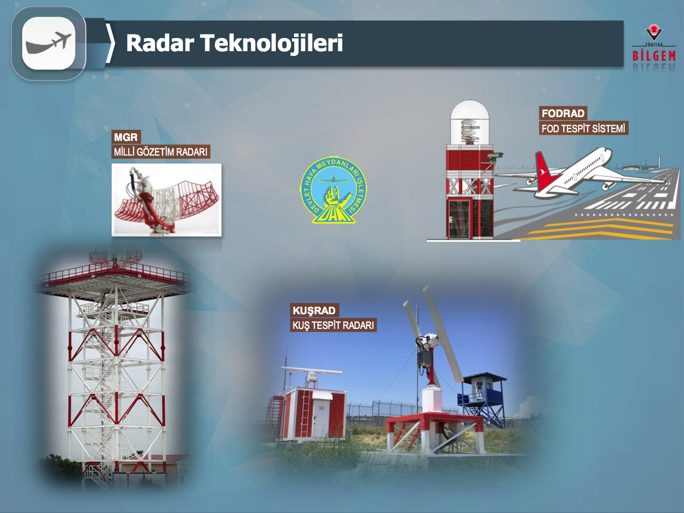 Bilişim, bilgi güvenliği ve ileri elektronik alanlarında gerçekleştirdiği çalışmalarla ülkemizin ihtiyaçlarına yenilikçi ve milli çözümler üreten ulusal bir ArGe merkezi konumundaki TÜBİTAK Bilişim ve Bilgi Güvenliği İleri Teknolojiler Araştırma Merkezi (BİLGEM), radar alanındaki çalışmalarına 2010 yılında başlamış olup halen sivil ve askeri amaçlı olarak hava sahası içindeki her türlü hareketliliğin gözetlenmesine imkan tanıyan farklı radar sistemlerinin tasarımı ve geliştirilmesi faaliyetlerini yürütmektedir.