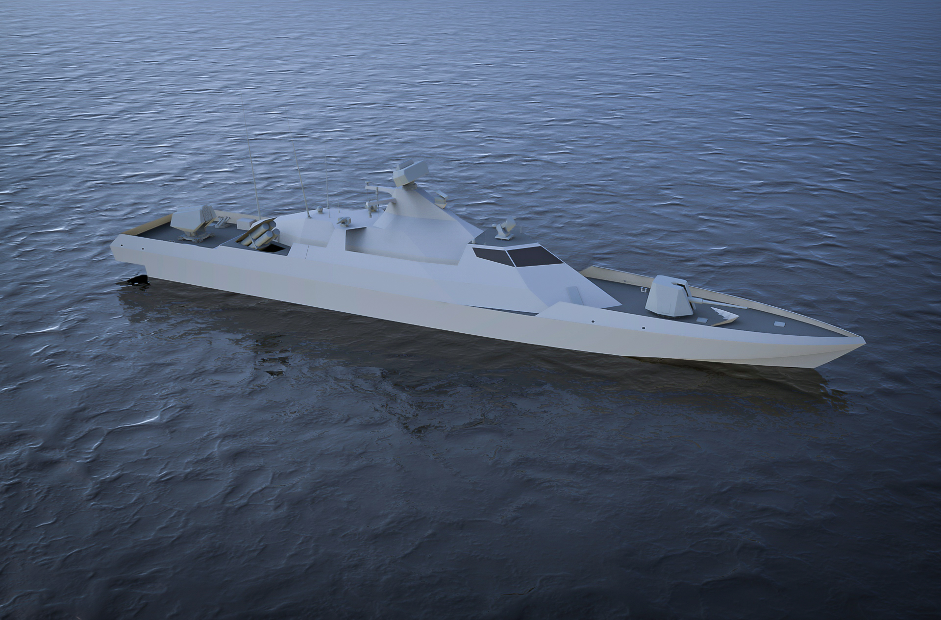 Projedeki yüksek sürat isteri nedeniyle STM ilk olarak bu sürati sağlayacak tekne formu üzerinde çalışmalar yapmıştır. Bu çerçevede SES (Surface Effect Ship/Yüzey Etkisi Gemisi) tasarımı da ele alınmıştır. Katamaran bir tasarımda, iki teknenin arasında hava yastığının bulunduğu bu tip bir uygulama, gemi ile su yüzeyi arasındaki teması asgariye indirerek geminin yükse sürate ulaşılmasına imkan tanıyor. Fakat STM, hava yastıklarının kaldırma gücünün sınırı sebebi ile teknenin taşıyabileceği faydalı yükün kısıtlı olması ve sürtünme dolayısıyla hava yastıklarının sık değişim gerektirmesi gibi nedenlerden ötürü SES konfigürasyonunu tercih etmemiş ve özellikle farklı deniz durumlarında sürati koruyabilmek için en uygun tasarım olduğu değerlendirilen kayıcı tekne formunu tercih etmiştir.