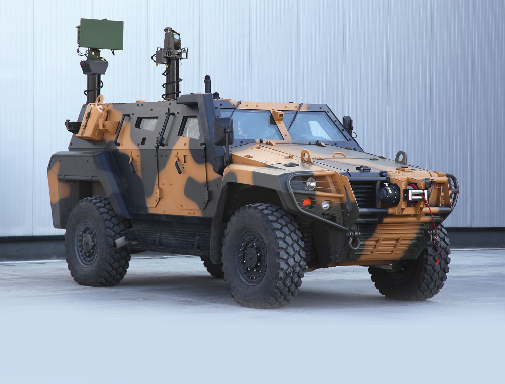 The Cobra-II Reconnaissance and Surveillance Vehicle, developed for use by the Land Forces Command for Border Security, comprises the integration of the superior technical and tactical features of Cobra-II vehicle as a platform with high-performance electronic subsystems designed for reconnaissance and surveillance. The on-board Land Surveillance Radar and the long-range Electro-Optic Sensor System provide cross-border and long-range reconnaissance and surveillance capabilities thanks to effective software functioning in a wide variety of territorial and climate conditions.