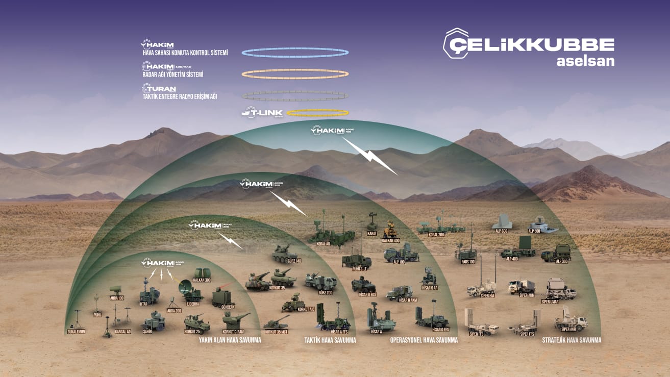 ASELSAN'ın ÇELİKKUBBE’de sistem geliştirmenin yanı sıra kritik bir rolü daha bulunuyor. Sahadaki bütün sistemlerin birbiriyle anlık haberleşmesini ve entegre çalışmasını sağlayacak yapay zekâ destekli komuta kontrol yazılımını da ASELSAN geliştirdi.