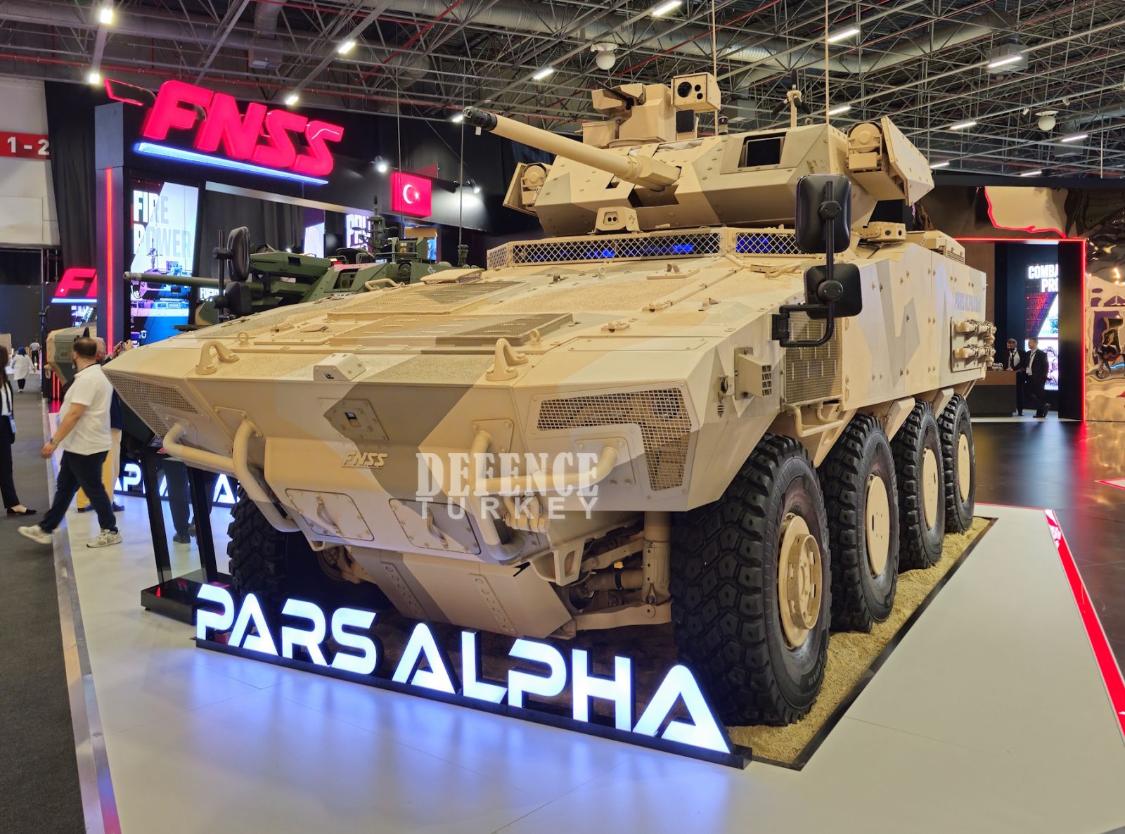 PARS ALPHA 8x8 Yeni Nesil Zırhlı Muharebe Aracı, Zırhlı Muharebe Aracı konfigürasyonunda sergilenecek. FNSS, Savunma Sanayii Başkanlığı (SSB) ve FNSS arasında imzalanan “Yeni Nesil Araçlar Projesi” kapsamında ilk fazında PARS ALPHA 8x8 Tanksavar Manga Aracı ve Mobil Onarım Aracı ile 6x6 konfigürasyonundaki 4 farklı görev donanımına sahip aracı Kara Kuvvetleri Komutanlığına teslim edecek.